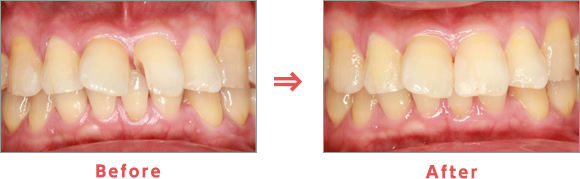 Before:前歯の間の虫歯を取り形を整えます。
