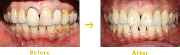 Before:前歯の黄ばみが気になり、歯を白くしたいと来院。