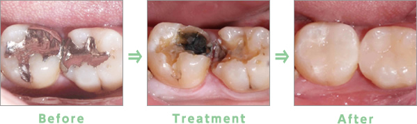 Before:金属アレルギーのため銀歯を除去希望で来院。