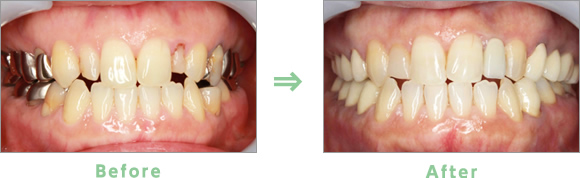 After:両側ともジルコニアセラミックを装着し機能回復を行いました。