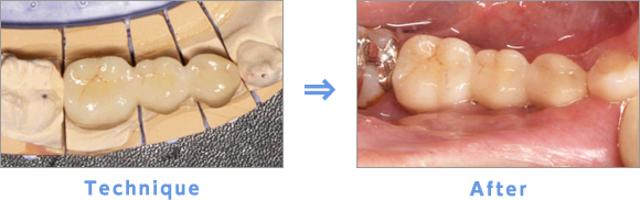 Technique:型取りをした模型上でブリッジを作製します。