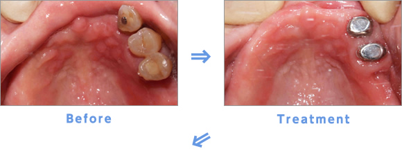 Treatment:人工歯根インプラントを埋入し骨結合期間を待ちます。