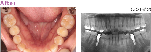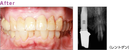 After:抜歯した歯をインプラントにして審美性の回復を行いました。