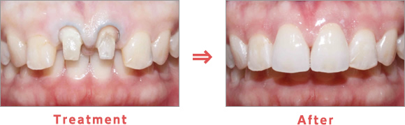 After:突出していた前歯は改善され、色や形も綺麗になりました。