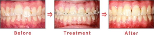 Treatment:過剰歯を抜歯し、セラミックブラケットで矯正します。
