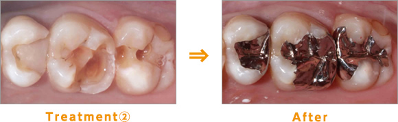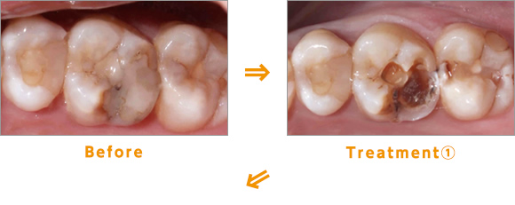 Treatment:虫歯になっているところを除去し、形を整えます。